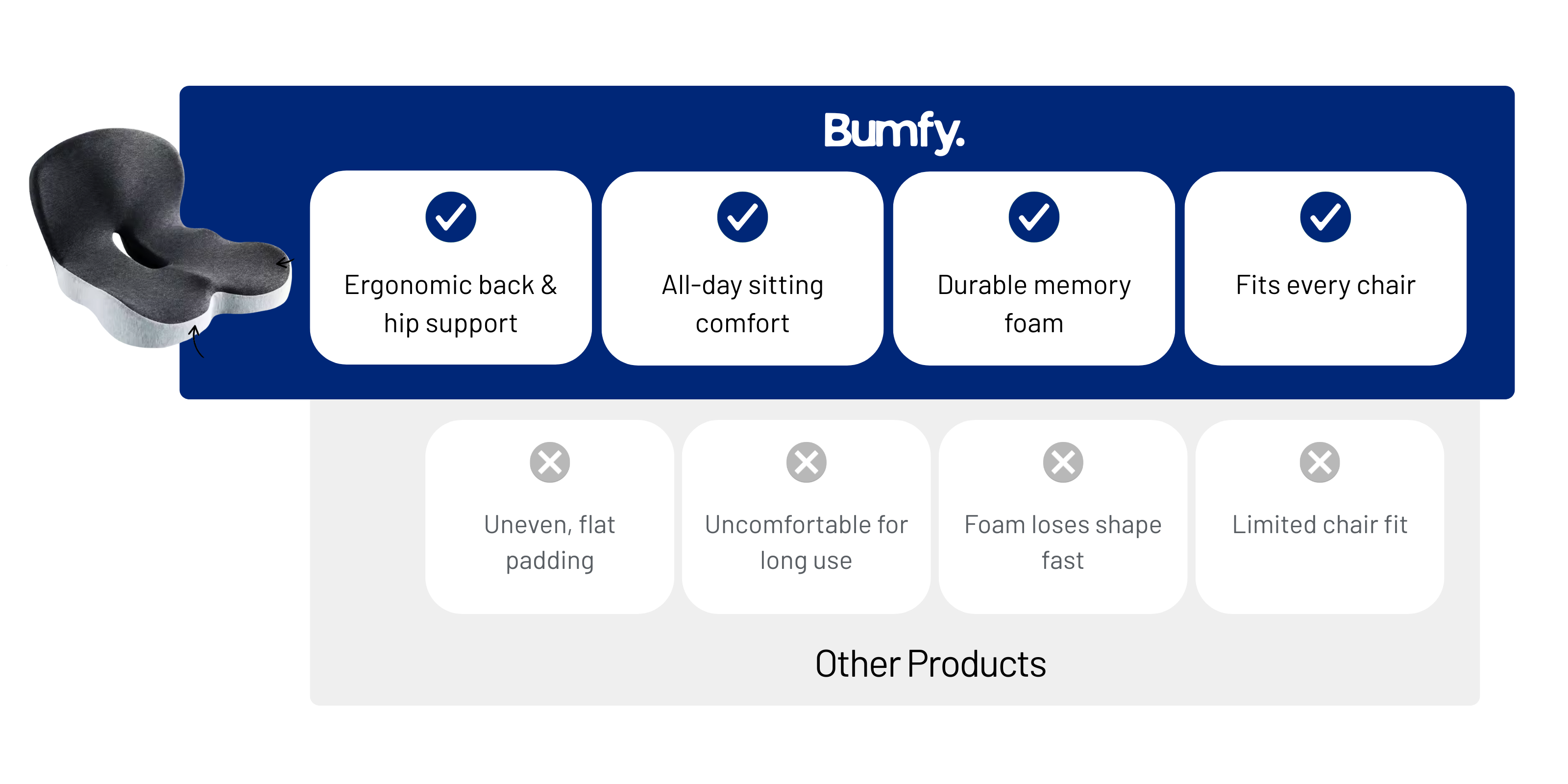 Daily discomfort drains your focus and energy. With built-in lumbar and seat support, this cushion relieves tension, improves posture, and keeps you comfortable for hours.